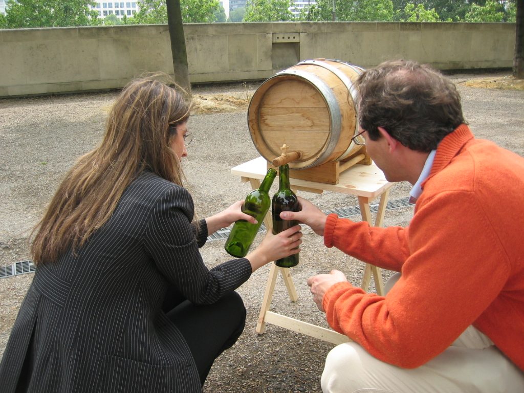 Devant vous les douelles, les cercles et la calle. Le dernier tonnelier de Paris vous montre comment procéder. Cet atelier permet d’évoquer le rôle des barriques dans l’élaboration du vin.